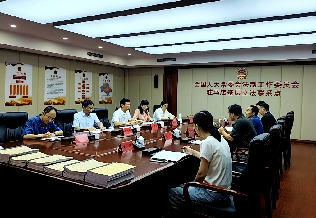 9 月 15 日,法学部副部长张福刚率领基层立法联系点成员杨金华、夏超峰、席能、李浩等前往驻马店市人大常委会开展调研,驻马店市人大常委会法工委主任谢桂良、副主任薛桂清,市人大立法联系点服务中心副主任王海帆等参与了调研座谈。