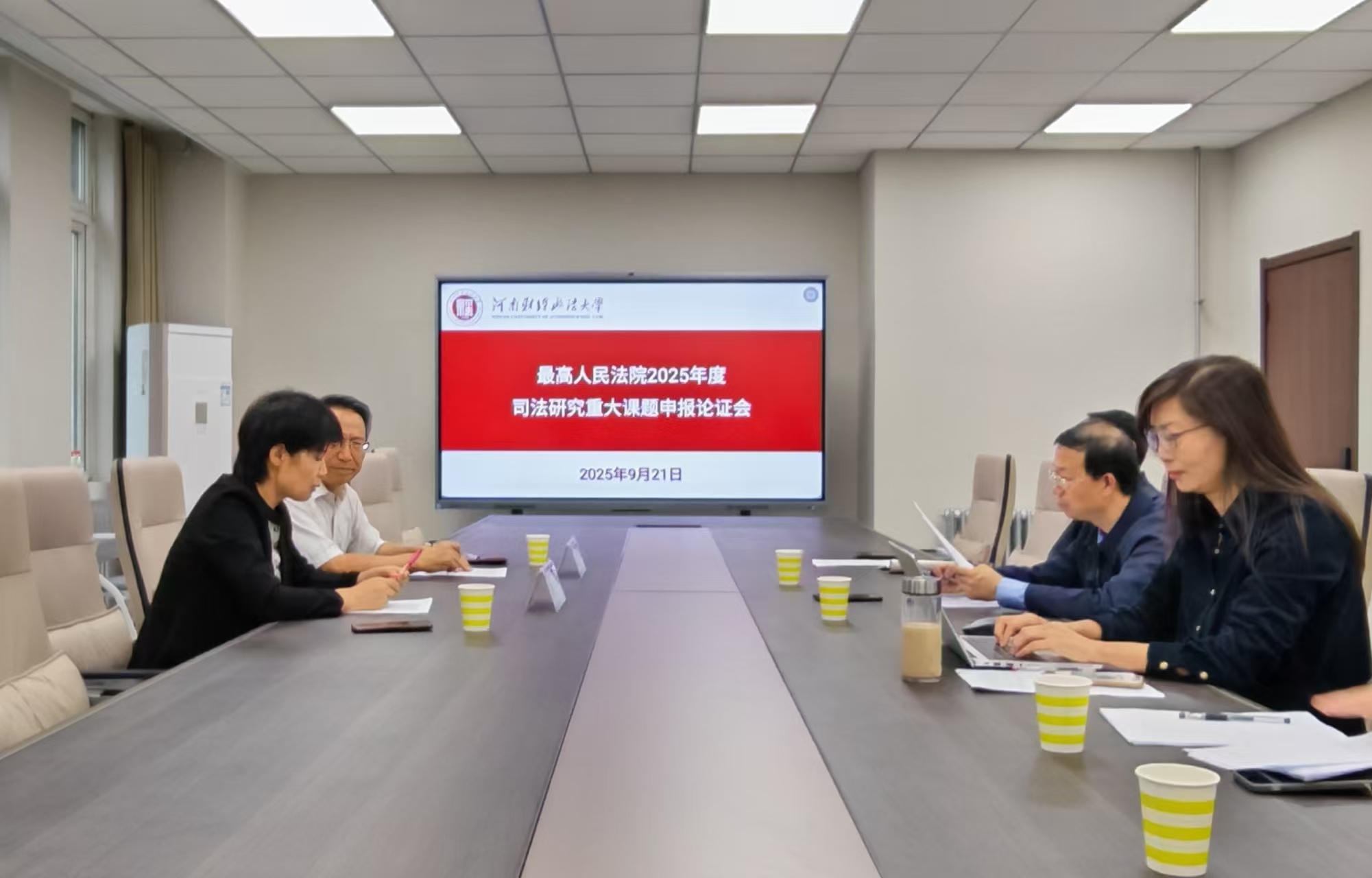 9月21日下午,最高人民法院2025年度司法研究重大课题申报论证会在法学部301会议室召开。最高人民法院原资深高级法官、中国应用法学研究所常务副所长、我校特聘教授曹守晔,副校长、法学部部长陈晓景,法学部主要负责人和部分学术骨干参与会议,会议由陈晓景副校长主持。