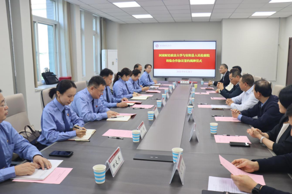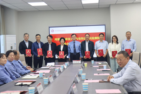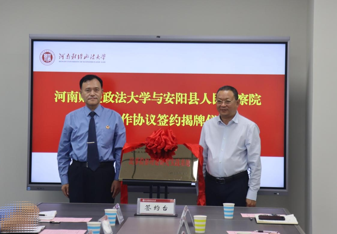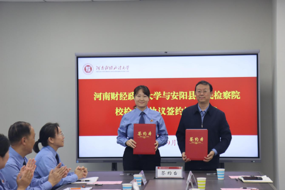 9月24日下午,河南财经政法大学与安阳县人民检察院检校合作协议签约暨揭牌仪式顺利举行。我校法学部党委书记王健、安阳县人民检察院党组书记、检察长甘军等双方代表出席活动。仪式由法学部副部长张福刚主持。