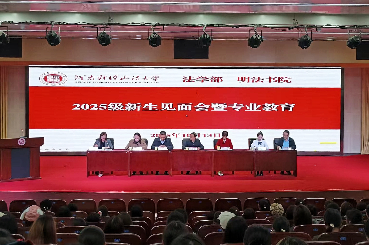 此次新生见面暨专业教育会,不仅为2025 级法学专业新生搭建了了解专业、衔接大学学习的桥梁,更传递了学校对新生成长的殷切期望。在全面依法治国深入推进的时代背景下,法学部以深厚的学科底蕴、完善的培养体系与贴心的服务保障,为新生开启了法治学习的大门。相信同学们将以此次会议为起点,在未来四年中深耕专业、锤炼本领,将个人成长融入法治建设洪流,成长为有理想、有本领、有担当的新时代法律人,为守护社会公平正义、推进国家法治进程贡献青春力量。